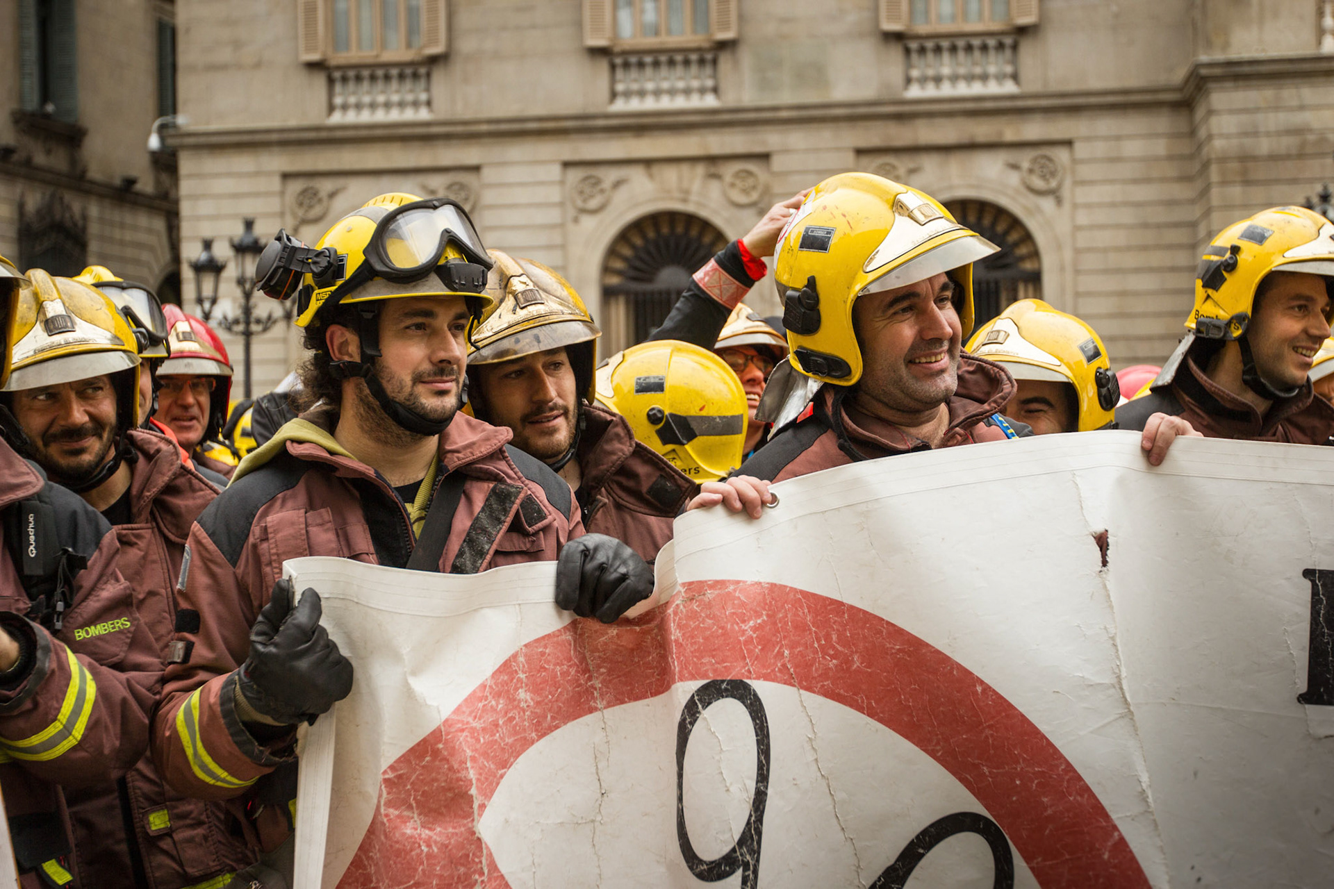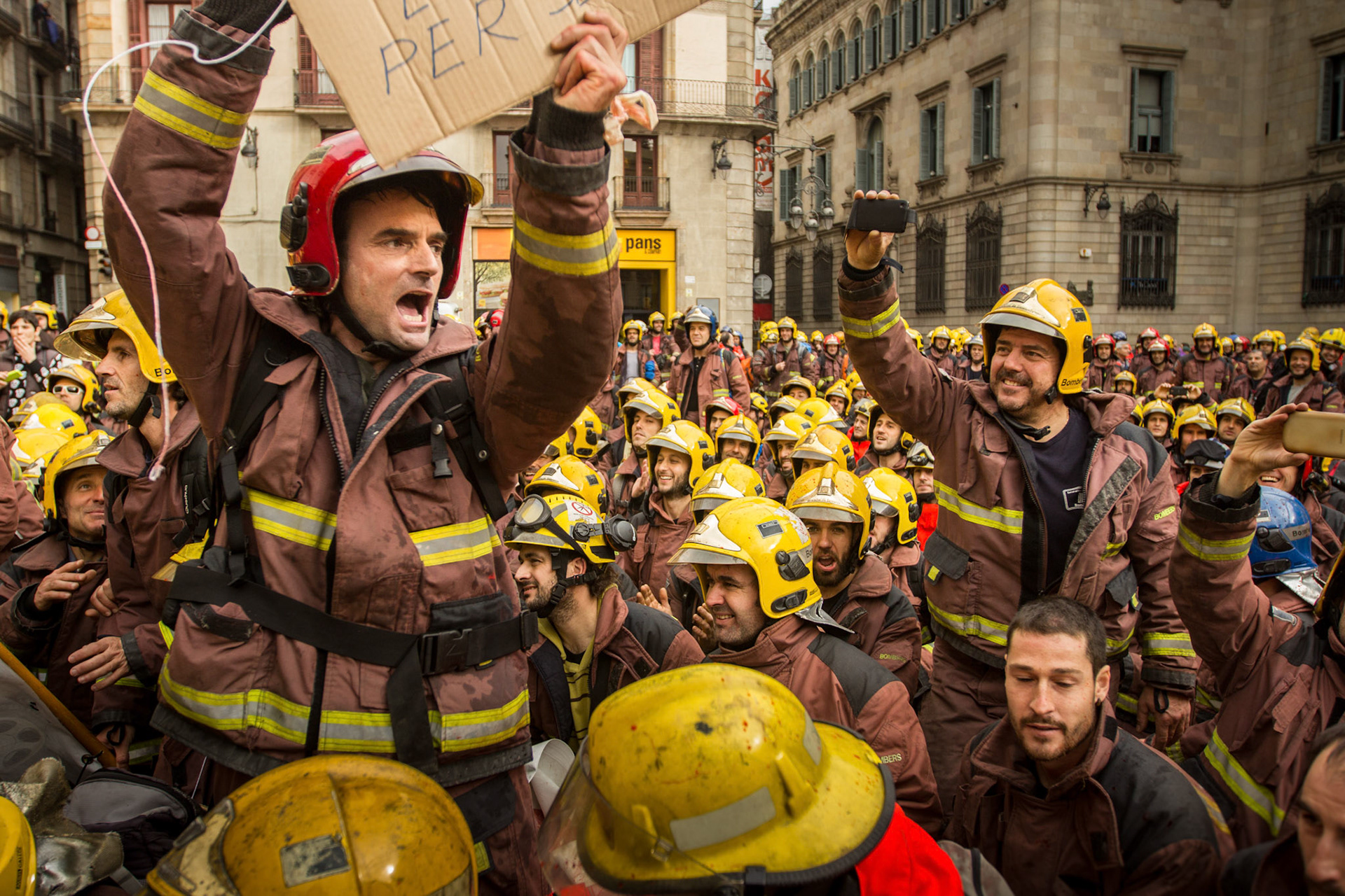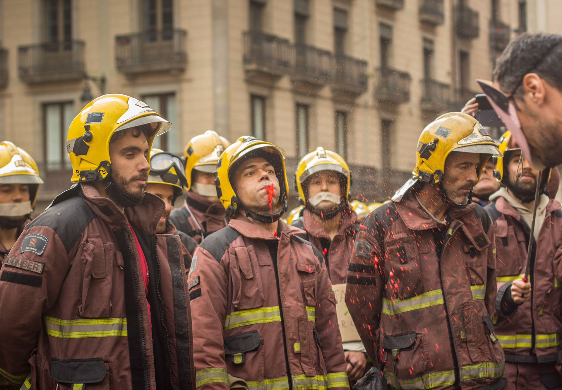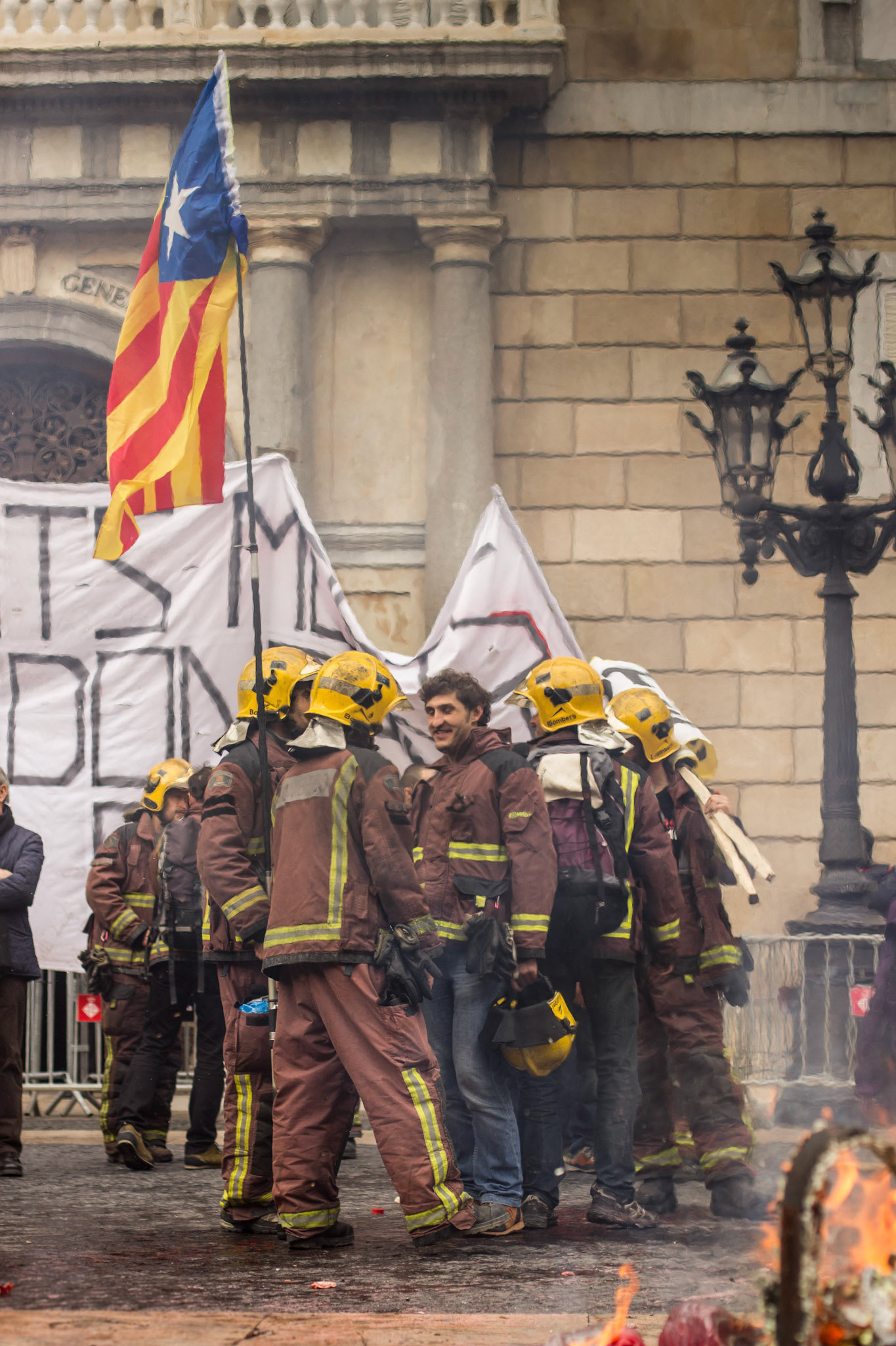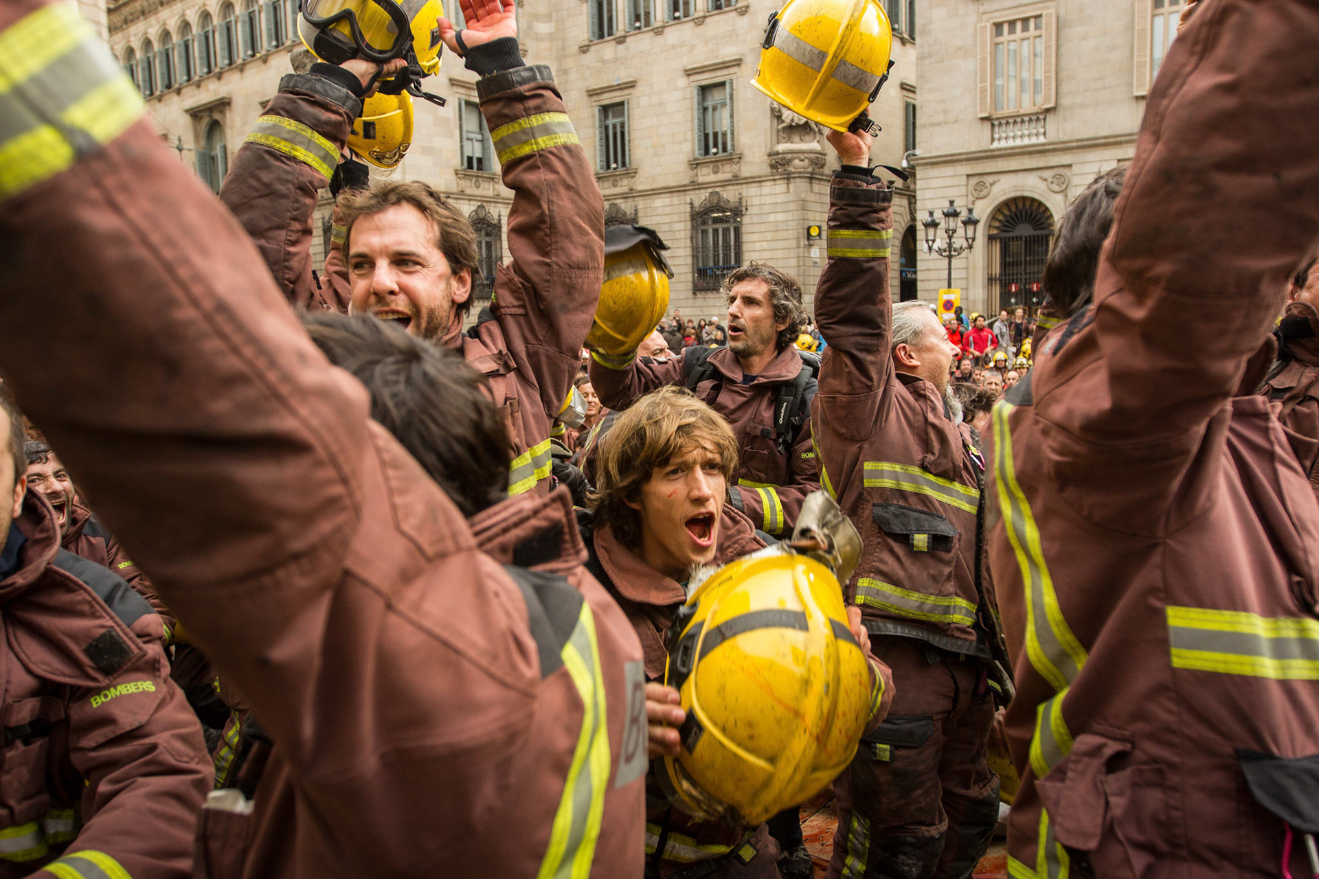 Barcelona, January 16, 2014 , a thousand professional body Firefighters of the Generalitat de Catalunya , concentrated on a demonstration outside the Parliament , through the Generalitat in Plaça Sant Jaume in Barcelona. Vindicated best working conditions, demonstrating peacefully against economic austerity policy of the Government. Denounced the lack of interest and absolute irresponsibility by the Generalitat . Fire services mock executions and finished the event with a reading of the manifest it delivered to the door of the Genelaritat .
