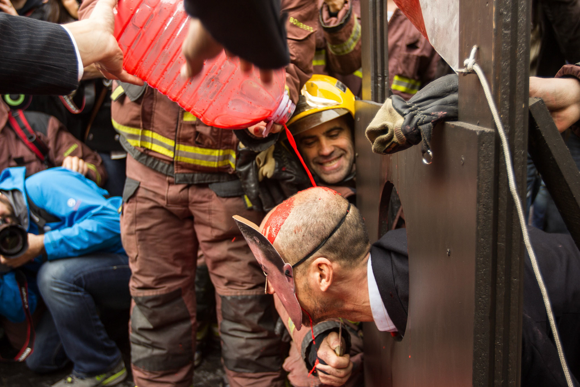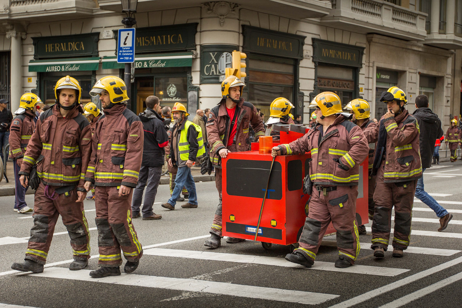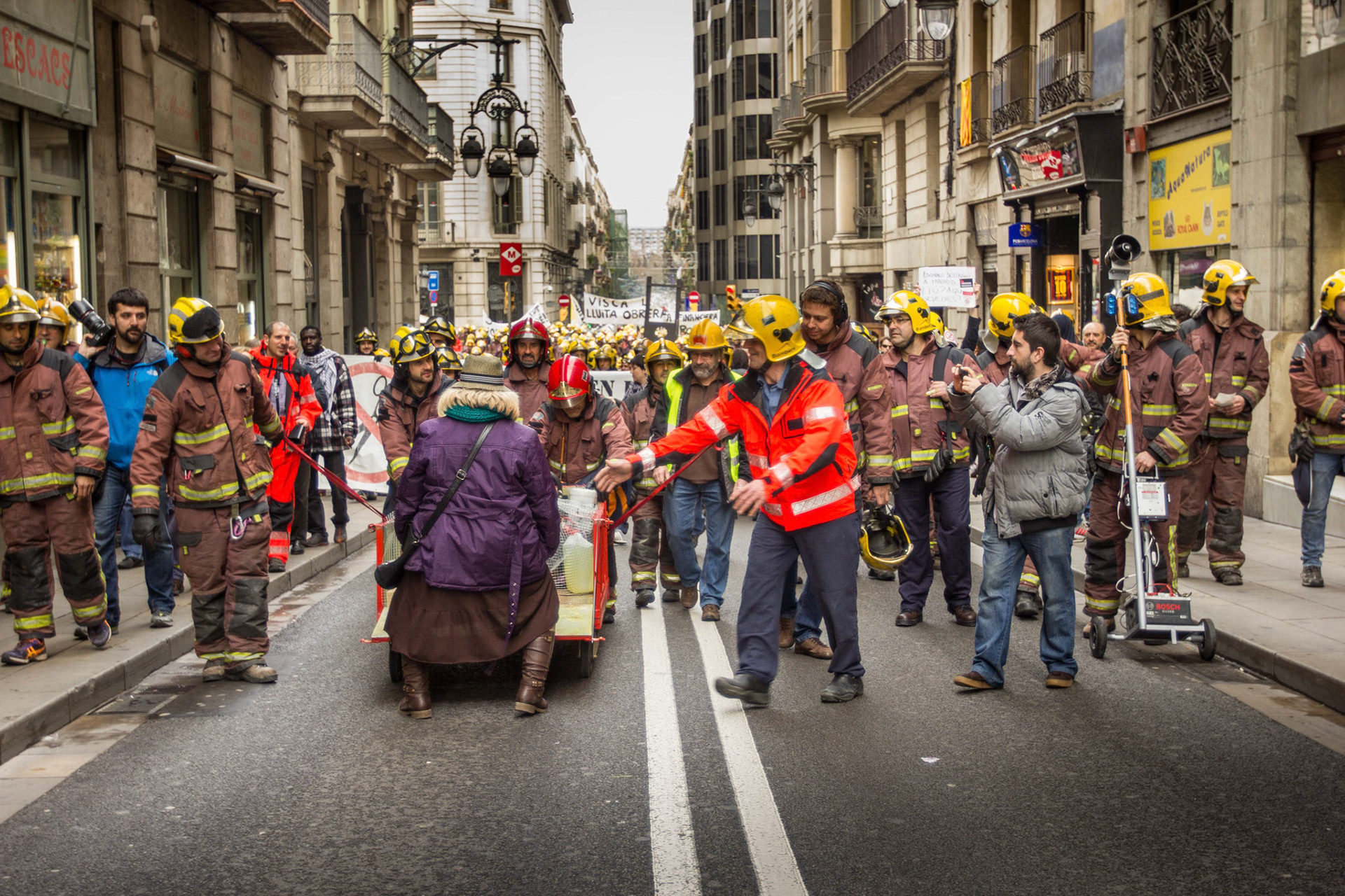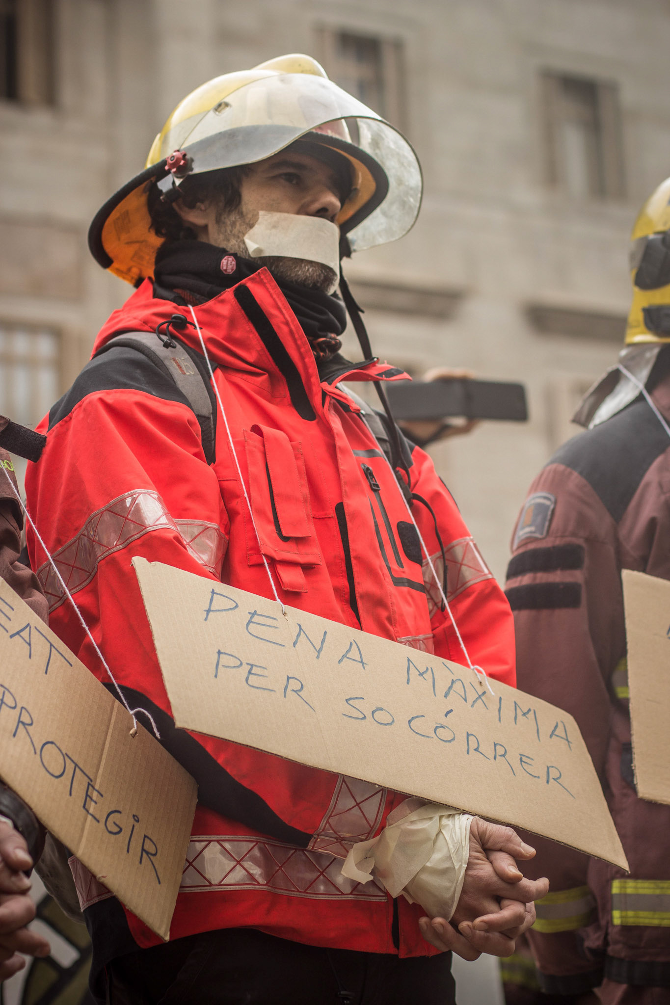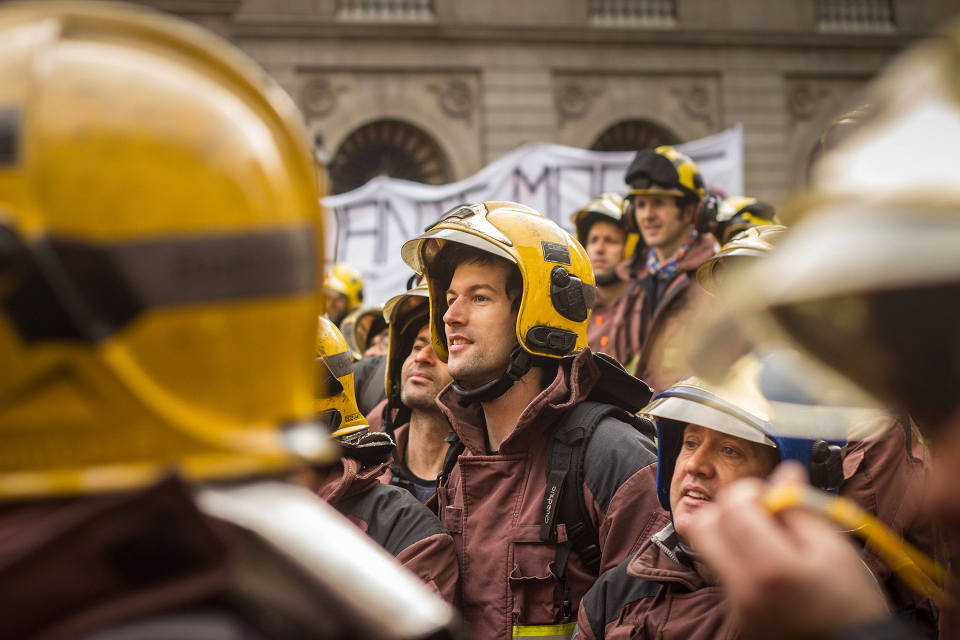 Barcelona, January 16, 2014 , a thousand professional body Firefighters of the Generalitat de Catalunya , concentrated on a demonstration outside the Parliament , through the Generalitat in Plaça Sant Jaume in Barcelona. Vindicated best working conditions, demonstrating peacefully against economic austerity policy of the Government. Denounced the lack of interest and absolute irresponsibility by the Generalitat . Fire services mock executions and finished the event with a reading of the manifest it delivered to the door of the Genelaritat .