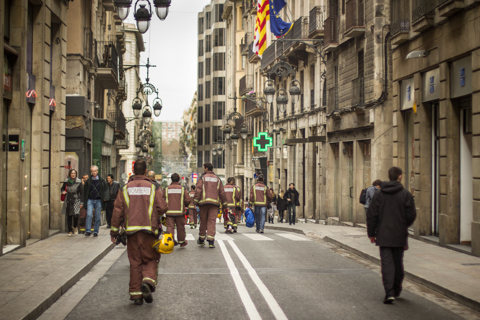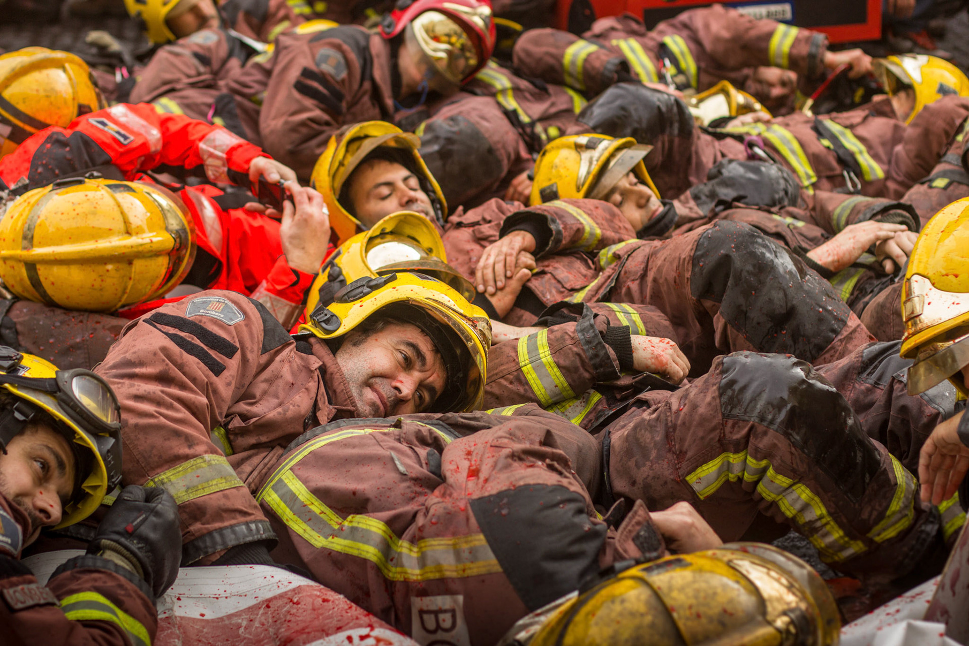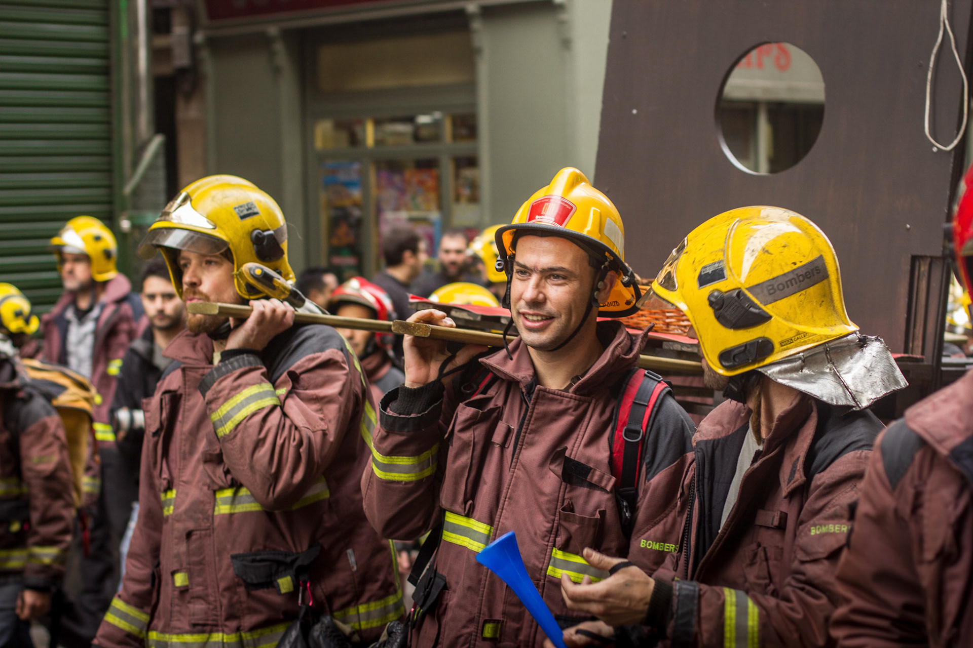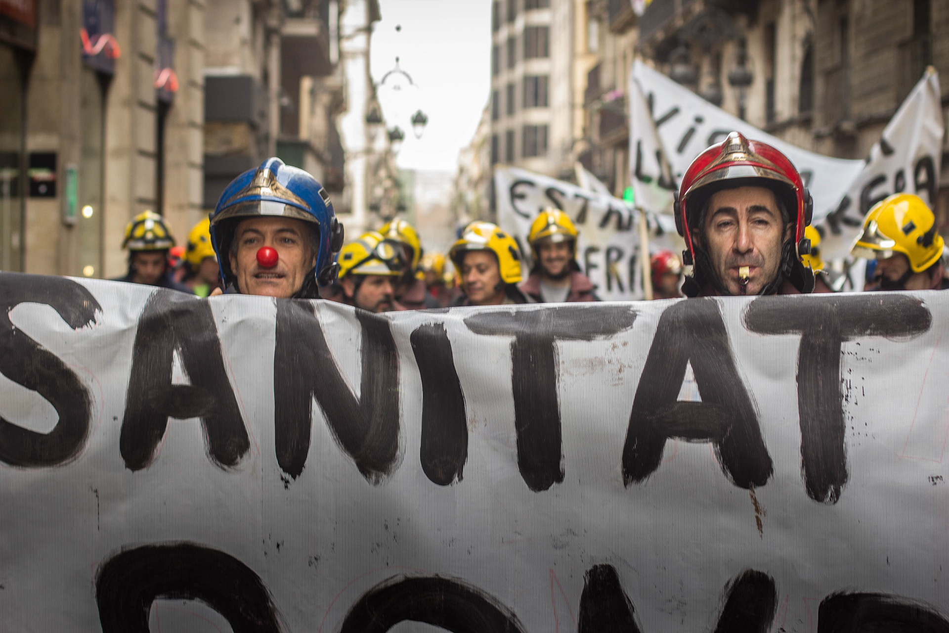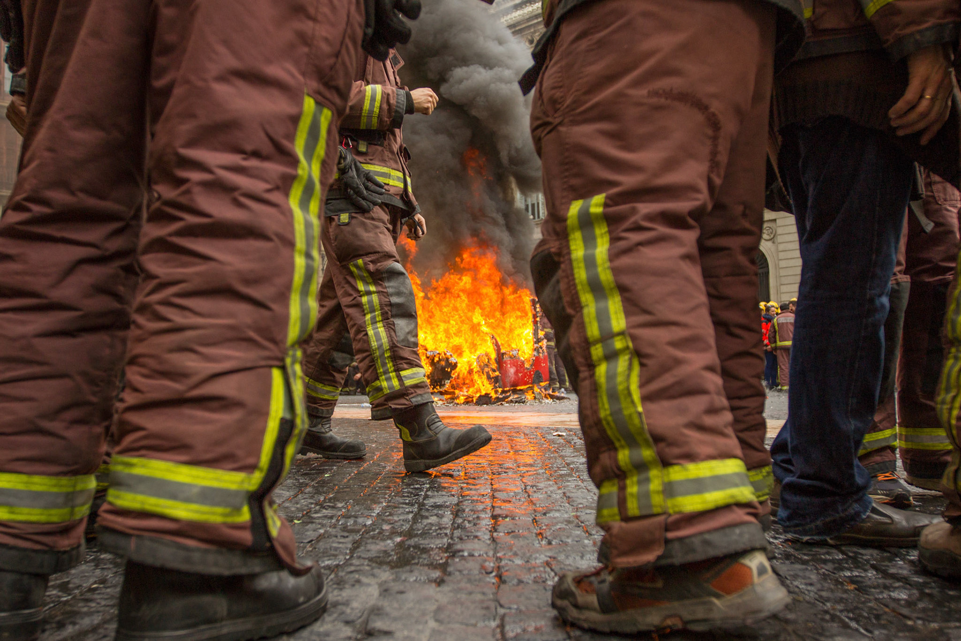Barcelona, January 16, 2014 , a thousand professional body Firefighters of the Generalitat de Catalunya , concentrated on a demonstration outside the Parliament , through the Generalitat in Plaça Sant Jaume in Barcelona. Vindicated best working conditions, demonstrating peacefully against economic austerity policy of the Government. Denounced the lack of interest and absolute irresponsibility by the Generalitat . Fire services mock executions and finished the event with a reading of the manifest it delivered to the door of the Genelaritat .
